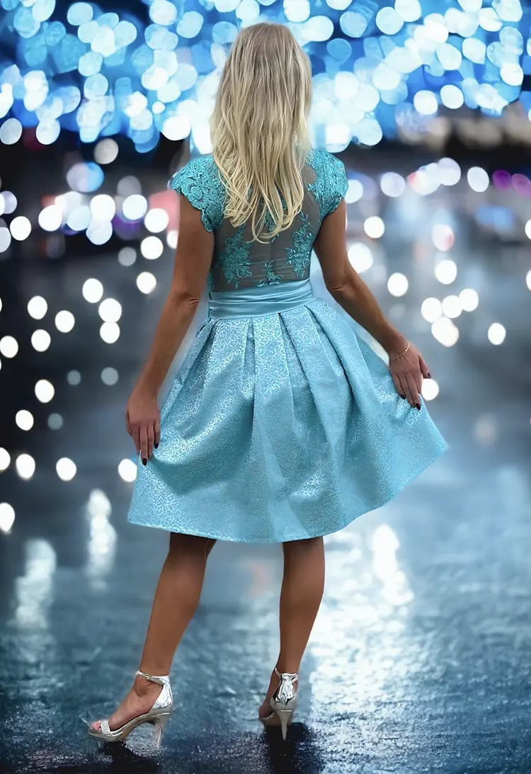 Luxus-Dirndl von Zwirndl sind keine Kleider von der Stange, sondern hochwertige Maßanfertigungen, die aus Spitzen, Brokatstoff und Seide gefertigt werden. Blüten und Perlen, knieumspielende Länge, formendes Dekolleté und Mut zur Farbe. All das macht ein „Zwirndl“ aus. Außergewöhnlich ist der transparente Rücken, den alle Modelle gemeinsam haben.